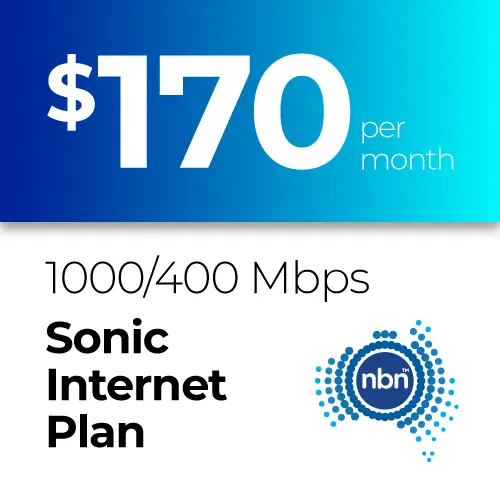 Our NBN 1000/400 Mbps Sonic Internet Plan plan with $0 setup fee and no long-term lock-in contract. Business grade internet delivered on Australia’s National Broadband Network (NBN). Connect better and benefit from cloud-based services.